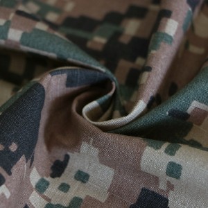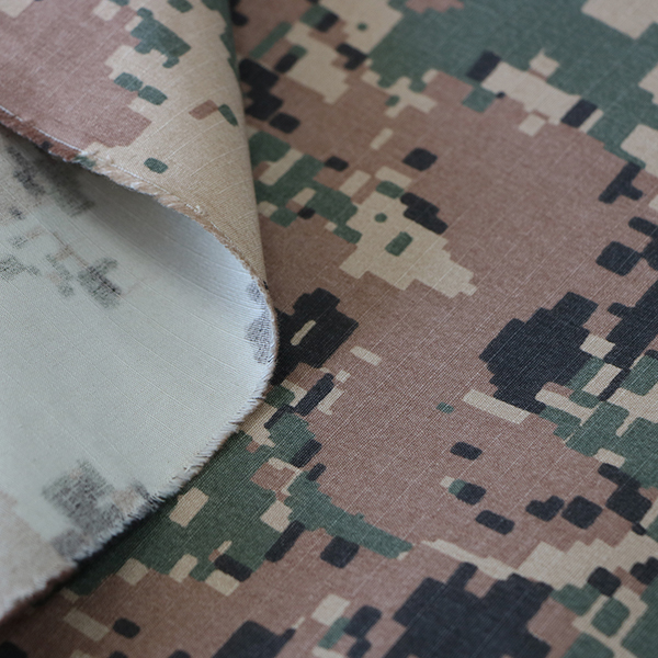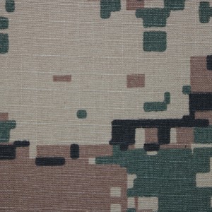 We choose the high quality raw material to weave the fabric , with Ripstop or Twill texture to improve the tensile strength and tear strength of the fabric . And we choose the best quality of Dipserse/Vat dyestuff with high skills of printing to guarantee the fabric with good colour fastness .