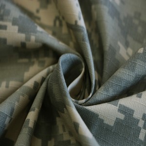 We choose the high quality raw material to weave the fabric , with Ripstop or Twill texture to improve the tensile strength and tear strength of the fabric . And we choose the best quality of Dipserse/Vat dyestuff with high skills of printing to guarantee the fabric with good colour fastness .