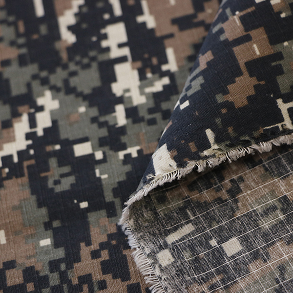 We choose the high quality raw material to weave the fabric , with Ripstop or Twill texture to improve the tensile strength and tear strength of the fabric . And we choose the best quality of Dipserse/Vat dyestuff with high skills of printing to guarantee the fabric with good colour fastness .