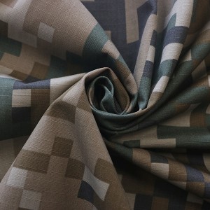 We choose the high quality raw material to weave the fabric , with Ripstop or Twill texture to improve the tensile strength and tear strength of the fabric . And we choose the best quality of Dipserse/Vat dyestuff with high skills of printing to guarantee the fabric with good colour fastness .