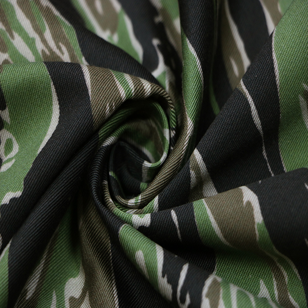 We choose the high quality raw material to weave the fabric , with Ripstop or Twill texture to improve the tensile strength and tear strength of the fabric . And we choose the best quality of Dipserse/Vat dyestuff with high skills of printing to guarantee the fabric with good colour fastness .