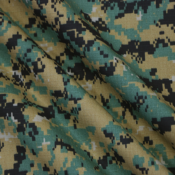 We choose the high quality raw material to weave the fabric , with Ripstop or Twill texture to improve the tensile strength and tear strength of the fabric . And we choose the best quality of Dipserse/Vat dyestuff with high skills of printing to guarantee the fabric with good colour fastness .
