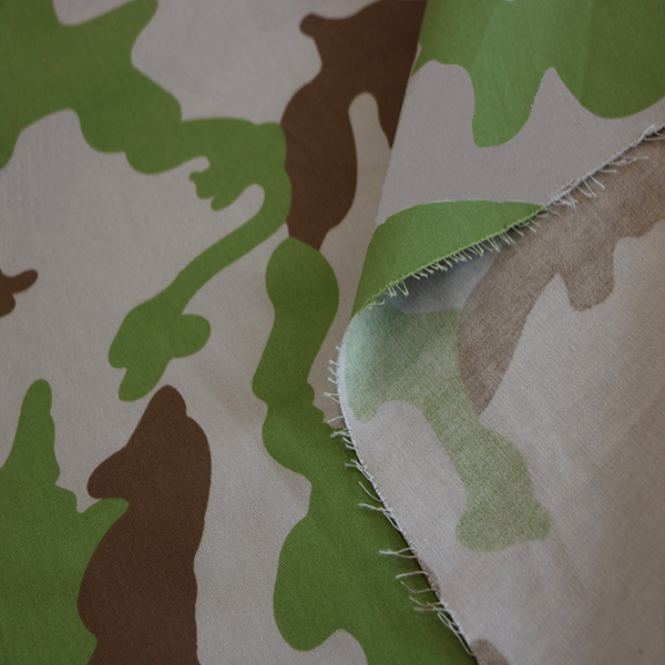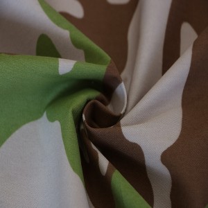We choose the high quality raw material to weave the fabric , with Ripstop or Twill texture to improve the tensile strength and tear strength of the fabric . And we choose the best quality of Dipserse/Vat dyestuff with high skills of printing to guarantee the fabric with good colour fastness .