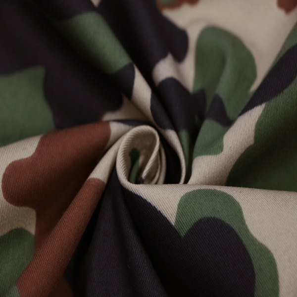 We choose the high quality raw material to weave the fabric , with Ripstop or Twill texture to improve the tensile strength and tear strength of the fabric . And we choose the best quality of Dipserse/Vat dyestuff with high skills of printing to guarantee the fabric with good colour fastness .