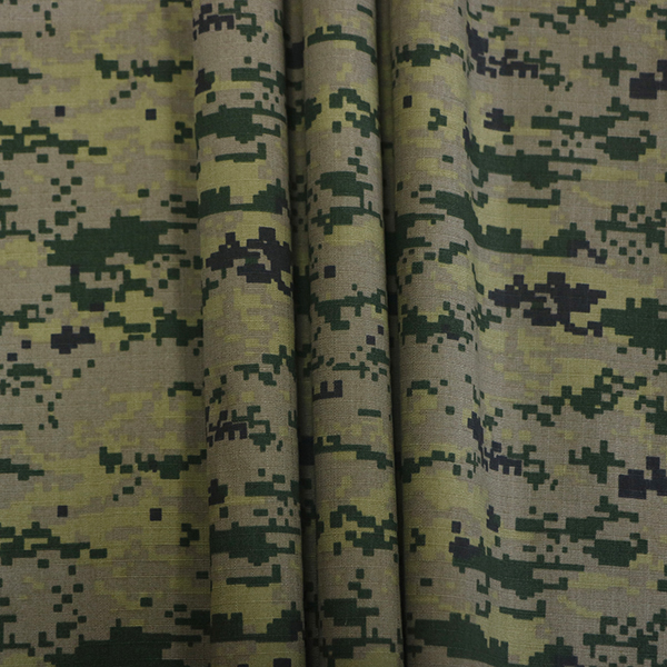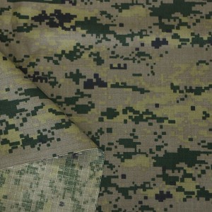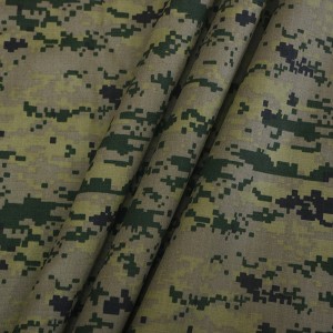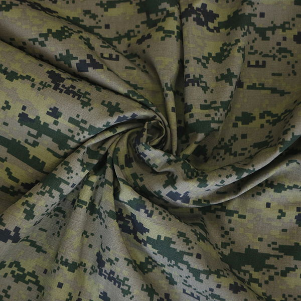 We choose the high quality raw material to weave the fabric , with Ripstop or Twill texture to improve the tensile strength and tear strength of the fabric . And we choose the best quality of Dipserse/Vat dyestuff with high skills of printing to guarantee the fabric with good colour fastness .