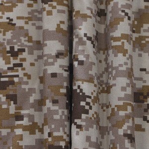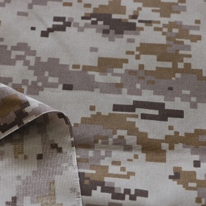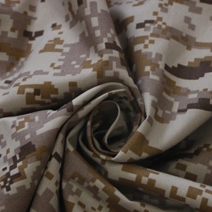 We choose the high quality raw material to weave the fabric , with Ripstop or Twill texture to improve the tensile strength and tear strength of the fabric . And we choose the best quality of Dipserse/Vat dyestuff with high skills of printing to guarantee the fabric with good colour fastness .