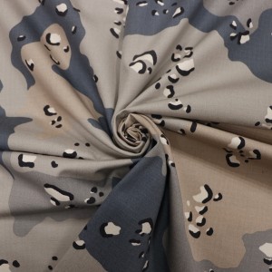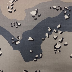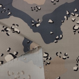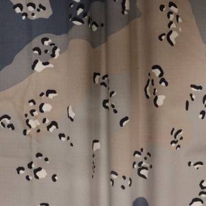 Kita milih bahan baku kualitas dhuwur kanggo nenun kain, karo Ripstop utawa Twill tekstur kanggo nambah kekuatan tensile lan kekuatan luh saka kain. Lan kita milih kualitas paling apik saka Dipserse / Vat dyestuff karo skills dhuwur saka printing kanggo njamin kain karo fastness werna apik.