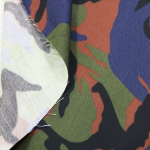 We choose the high quality raw material to weave the fabric , with Ripstop or Twill texture to improve the tensile strength and tear strength of the fabric . And we choose the best quality of Dipserse/Vat dyestuff with high skills of printing to guarantee the fabric with good colour fastness .