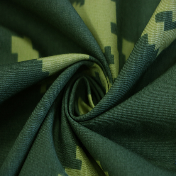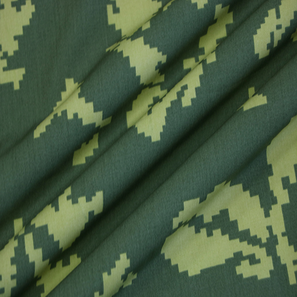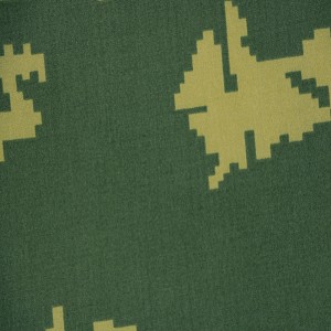 We choose the high quality raw material to weave the fabric , with Ripstop or Twill texture to improve the tensile strength and tear strength of the fabric . And we choose the best quality of Dipserse/Vat dyestuff with high skills of printing to guarantee the fabric with good colour fastness .