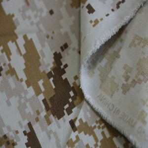 We choose the high quality raw material to weave the fabric , with Ripstop or Twill texture to improve the tensile strength and tear strength of the fabric . And we choose the best quality of Dipserse/Vat dyestuff with high skills of printing to guarantee the fabric with good colour fastness .