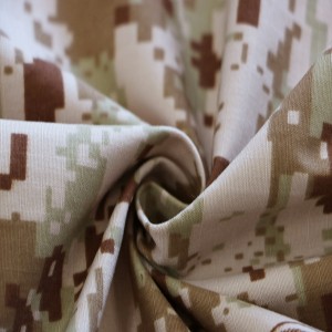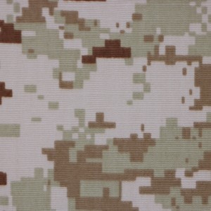 We choose the high quality raw material to weave the fabric , with Ripstop or Twill texture to improve the tensile strength and tear strength of the fabric . And we choose the best quality of Dipserse/Vat dyestuff with high skills of printing to guarantee the fabric with good colour fastness .