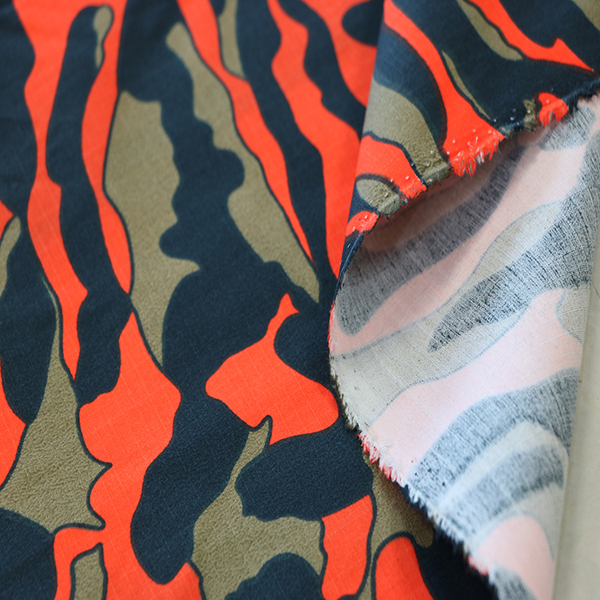 We choose the high quality raw material to weave the fabric , with Ripstop or Twill texture to improve the tensile strength and tear strength of the fabric . And we choose the best quality of Dipserse/Vat dyestuff with high skills of printing to guarantee the fabric with good colour fastness .
