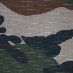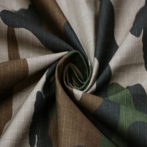 We choose the high quality raw material to weave the fabric , with Ripstop or Twill texture to improve the tensile strength and tear strength of the fabric . And we choose the best quality of Dipserse/Vat dyestuff with high skills of printing to guarantee the fabric with good colour fastness .