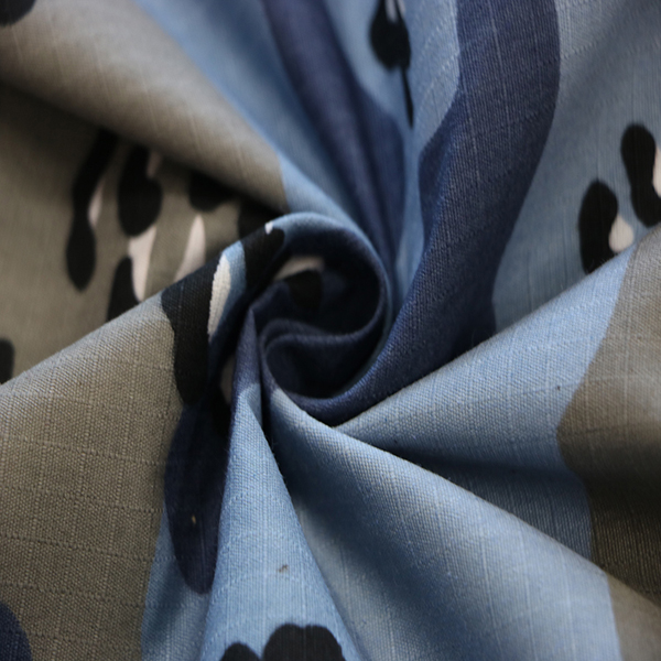 Mata dokamak üçin ýokary hilli çig mal saýlaýarys, Ripstop ýa-da Twill dokumasy bilen matanyň dartyş güýjüni we ýyrtyk güýjüni ýokarlandyrmak üçin. Matany gowy reňk çaltlygy bilen kepillendirmek üçin ýokary çap etmek ussatlygy bolan Dipserse / Vat boýagynyň iň gowy hilini saýlaýarys.