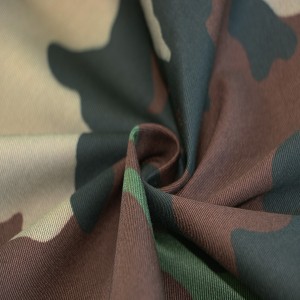We choose the high quality raw material to weave the fabric , with Ripstop or Twill texture to improve the tensile strength and tear strength of the fabric . And we choose the best quality of Dipserse/Vat dyestuff with high skills of printing to guarantee the fabric with good colour fastness .